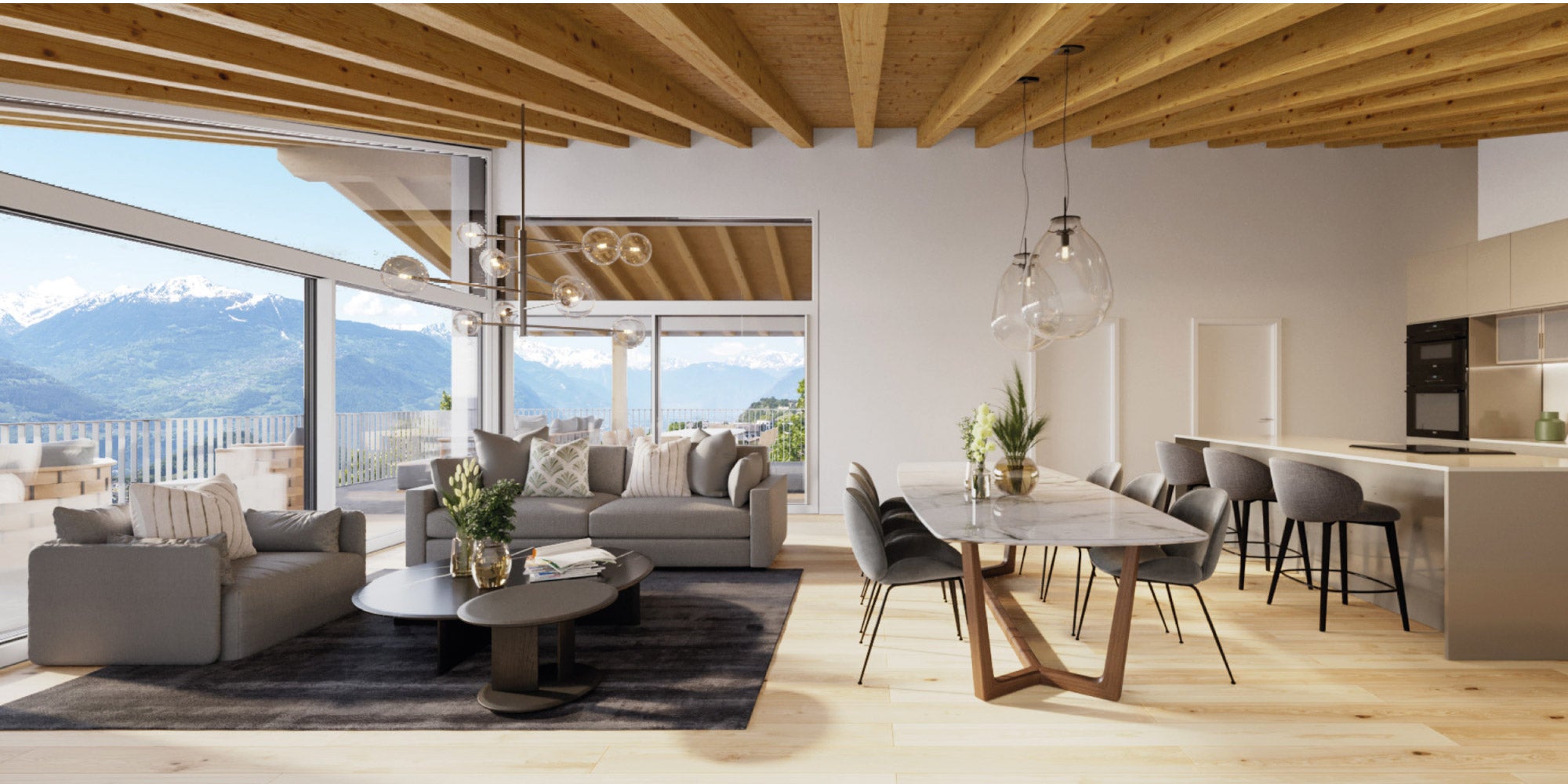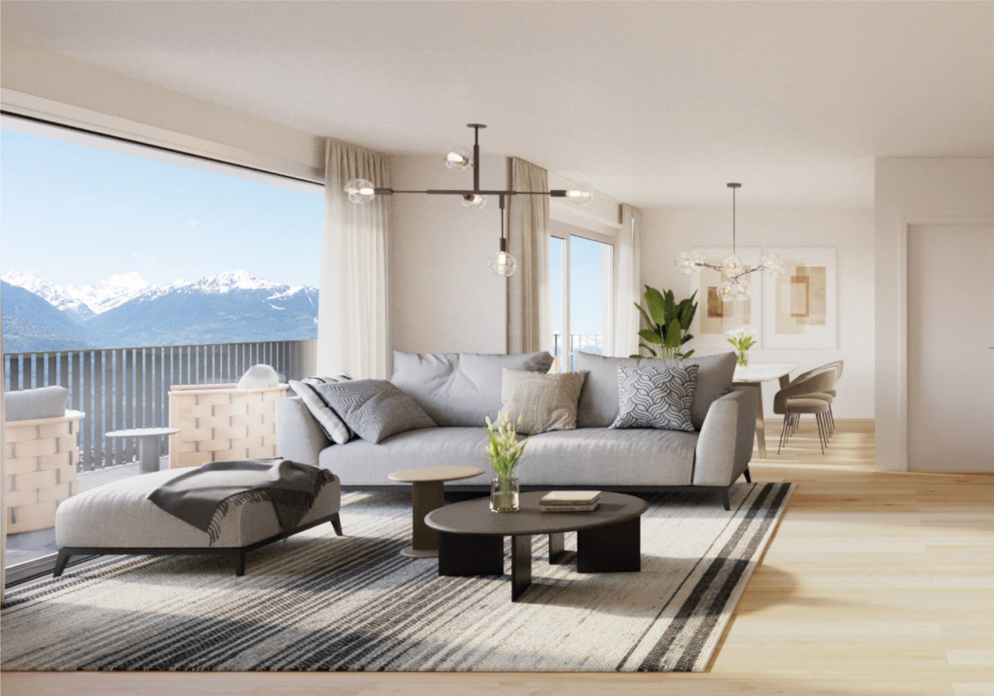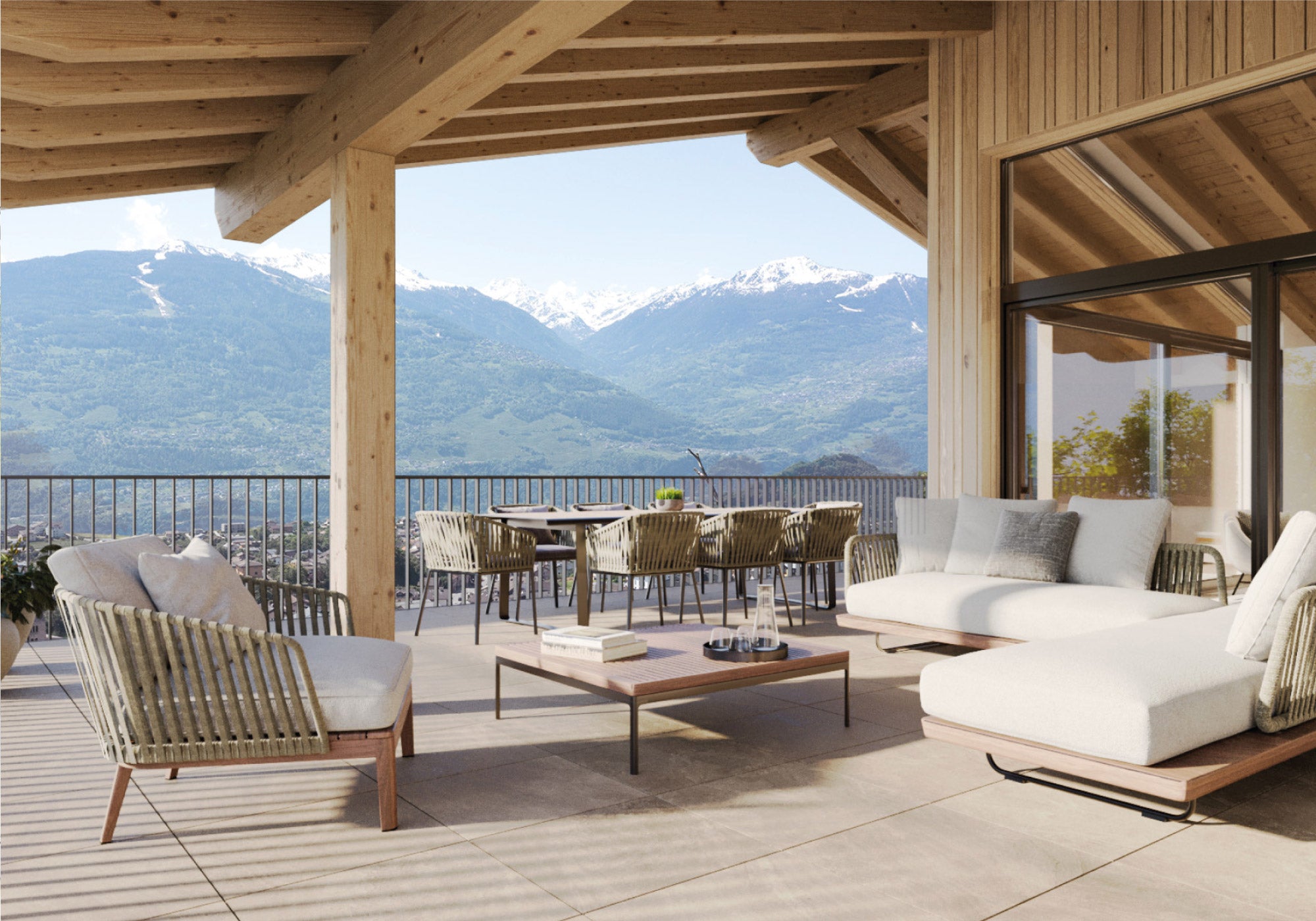 Le panorama exceptionnel qu’offre le coteau Saviésan permettra aux futurs habitants des deux résidences de jouir du spectacle de la nature tout au long des saisons.