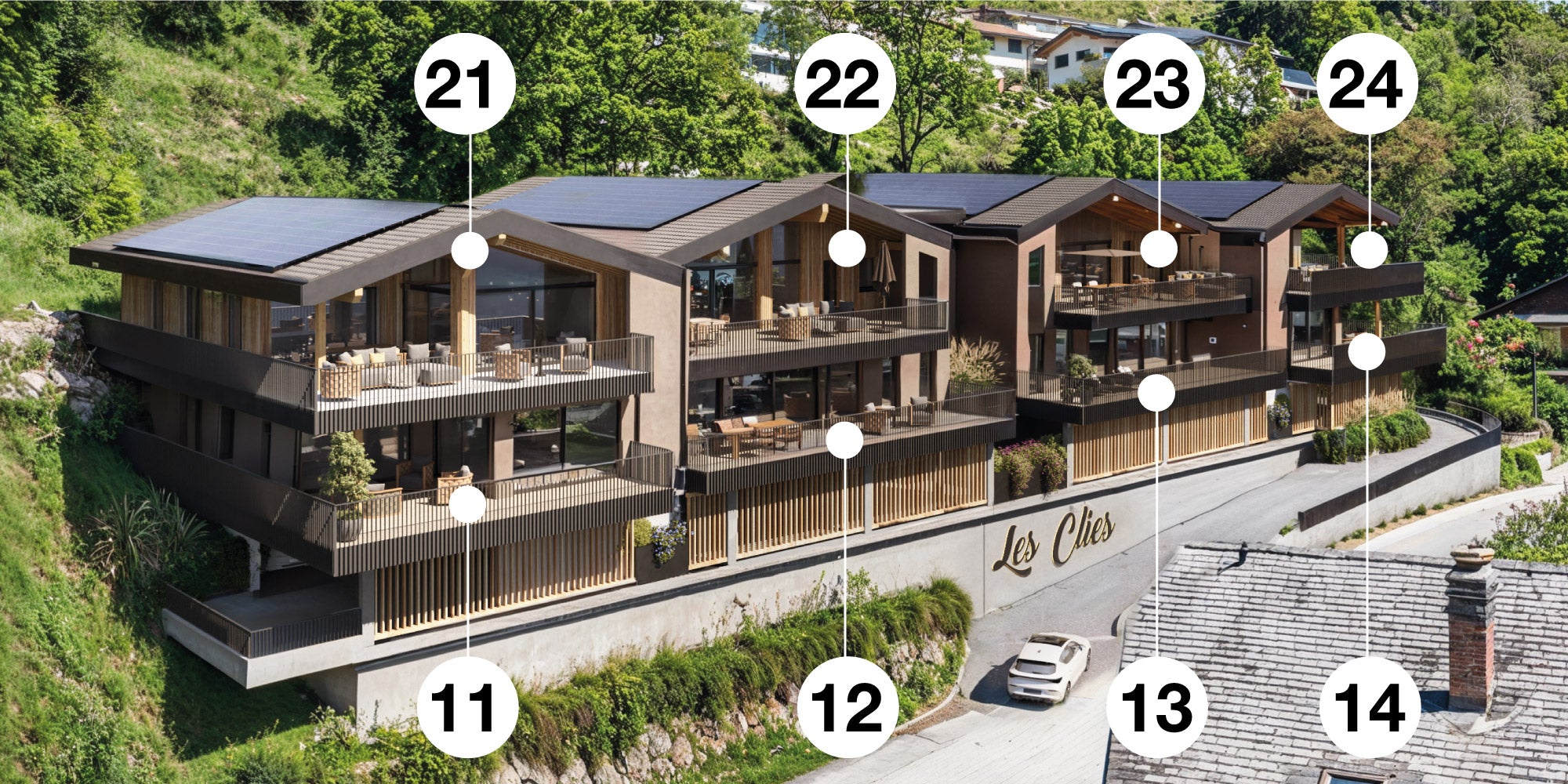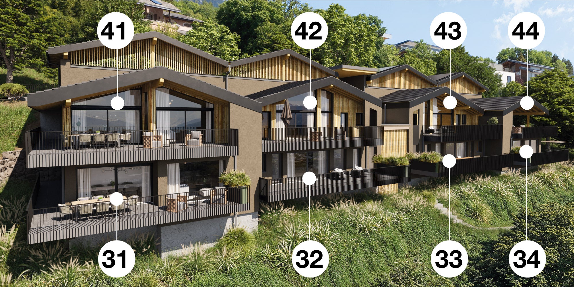 CHAMPS DE LA CROIX & LES CLIES sont deux nouvelles résidences comprenant chacune 8 appartements premium de 3½ et 4½ pièces, offrant des surfaces particulièrement généreuses. Chaque logement bénéficie d’une vaste terrasse allant de 38 à 67 m², conçue comme un véritable prolongement de l’espace de vie.